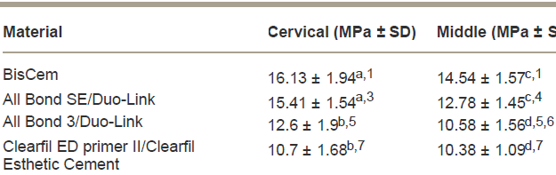 “(BisCem) exhibited similar bond strength values compared with conventional resin